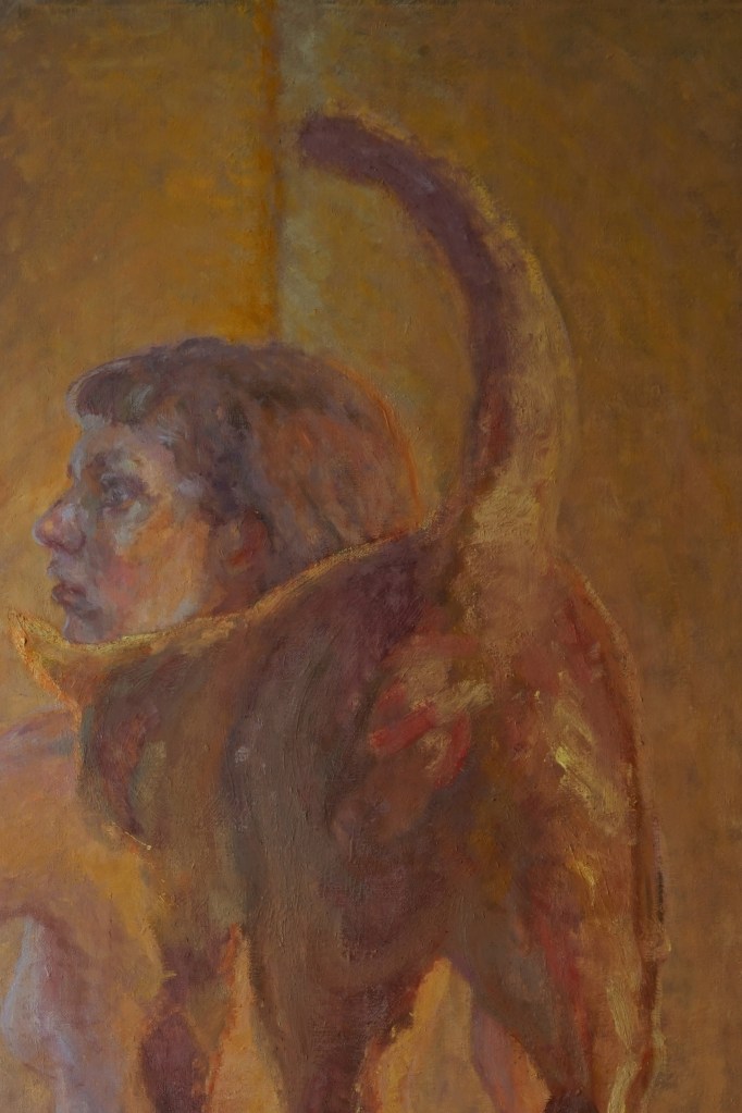 When I look at “Cat problem” I am absolutely sure that this is the only way to paint what is portrayed there. A person, surrounded by his private world, without any irony, but also without illusion, a portrait that walks deftly between the ridiculous edge of a room full of fat cats and the sacrum of the resigned gaze of those who watch over them. It is the subversive middle way that we have before us, as improbable and magical as the technique applied here, which devotes all its energy and vigor to the mid-tone and, only God knows how, but he does it!